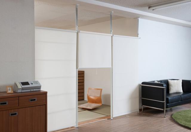 ロールスクリーンで間仕切り具合を調整できるので使い方も様々。ドアタイプと合わせれば、行き来も可能でオフィスなどあらゆる場面で活躍します。