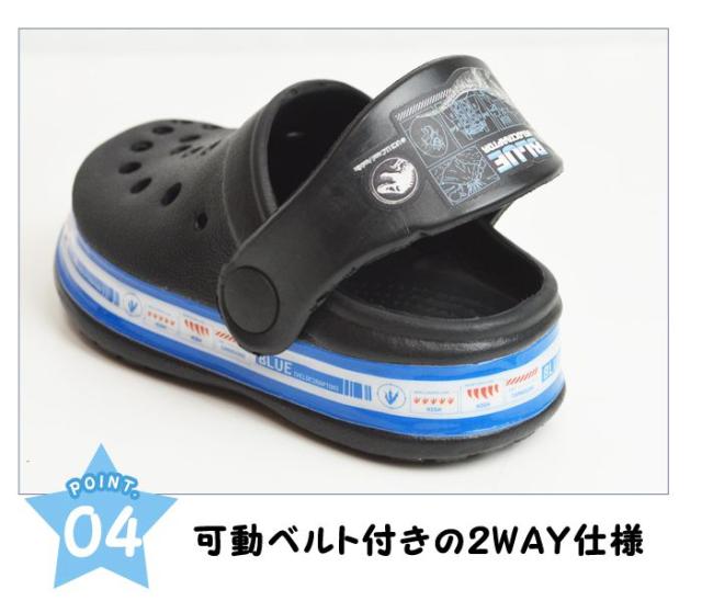 大人から子供まで大人気の映画「ジュラシックワールド」のソールがピカピカ光るキッズサンダルが登場。ベルト部分が可動するのでかかと部分にフィットして脱げにくくできる2way仕様。子供の足型に合わせているので足にフィットし、軽くて疲れにくいのでお子様に安心して履いていただけます。お子様へのプレゼントなどにもオススメです!