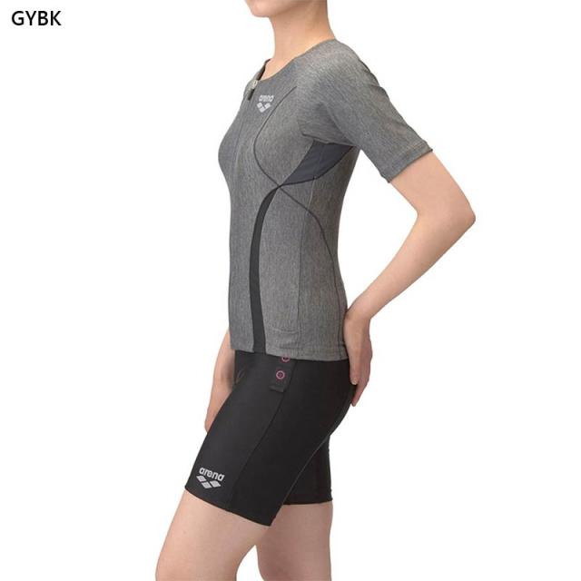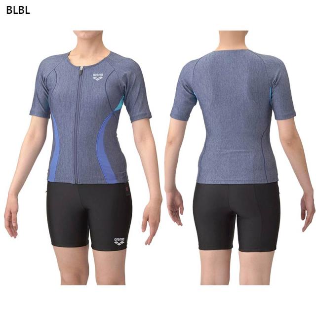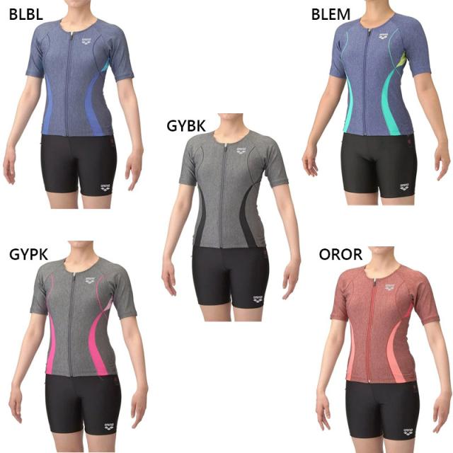 アリーナ レディース フィットネスセパレーツ 水泳 ウェア 競技 水着 カバーバック ミドルレッグ 差し込みパッド 運動 スポーツ グレー ブルー 青 オレンジ 灰色 送料無料 arena AS5SWF43L