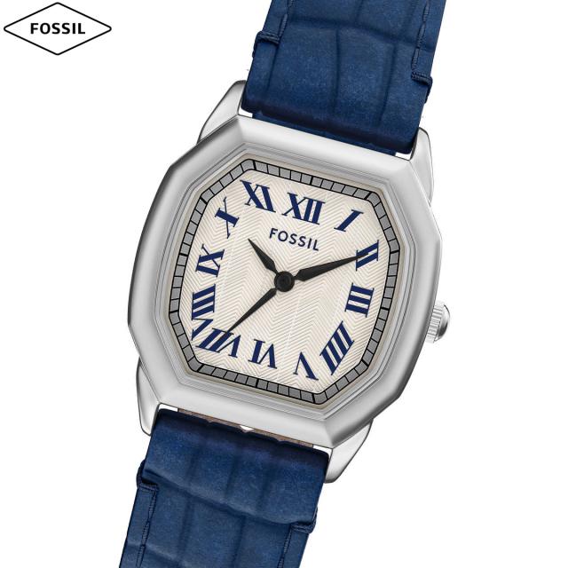 このシルバートーンの小さな八角形ケースに、質感のあるクリーム色のダイヤルとネイビーのクロコエンボス加工レザーストラップが美しくマッチしています。ユニークなフォルムのケースは、モダンな幾何学的シルエットを生み出し、レザーのディープブルーの柔らかなコントラストを引き立てています。ステンレススチールから考え抜かれて作られたモデルは、ポリッシュ仕上げが上品さを引き立て、テクスチャードダイヤルが奥行きとディテールを際立たせます。素材とデザイン要素の組み合わせにより、このモデルは新鮮で親しみやすい美的感覚を備えた傑出したアクセサリーとなっています。【フォッシル FOSSIL 2025 新作】