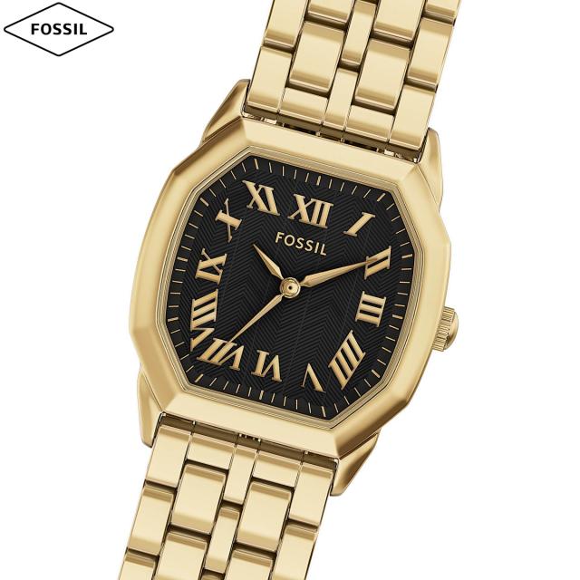 ゴールドトーンのステンレススチール製八角形ケースは、この時計に独特の幾何学的なデザインをもたらし、ゴールドトーンのステンレススチール製ブレスレットとマッチしています。ブラックの質感のあるダイヤルが繊細なコントラストと奥行きを生み出し、三針機能で簡単に時間を計ることができます。考え抜かれたクラフツマンシップでデザインされ、モダンな素材とすっきりとしたラインを組み合わせた、洗練されながらも親しみやすいデザインです。【フォッシル FOSSIL 2025 新作】