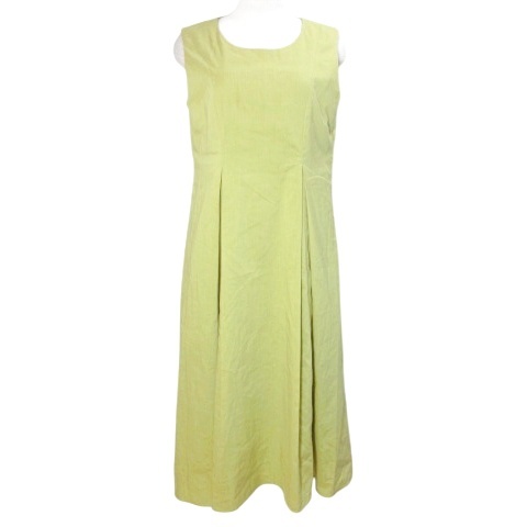 【中古】ダーマコレクション ロング ワンピース ノースリーブ タックフレア リネン混 11AR L相当 イエロー系 X