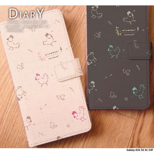 Galaxy A36 5G SC-54F ケース 手帳型 ギャラクシーa36 カバー デザイン にわとり02(パターン) にわとり ひよこ 鳥 北欧 くすみカラー 手書き風 イラスト 手帳