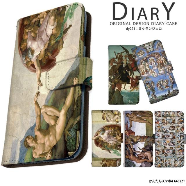 かんたんスマホ4 A402ZT ケース 手帳型 カバー デザイン ミケランジェロ・ブオナローティ ミケランジェロ 絵画 名画 作品 グッズ 最後の審判