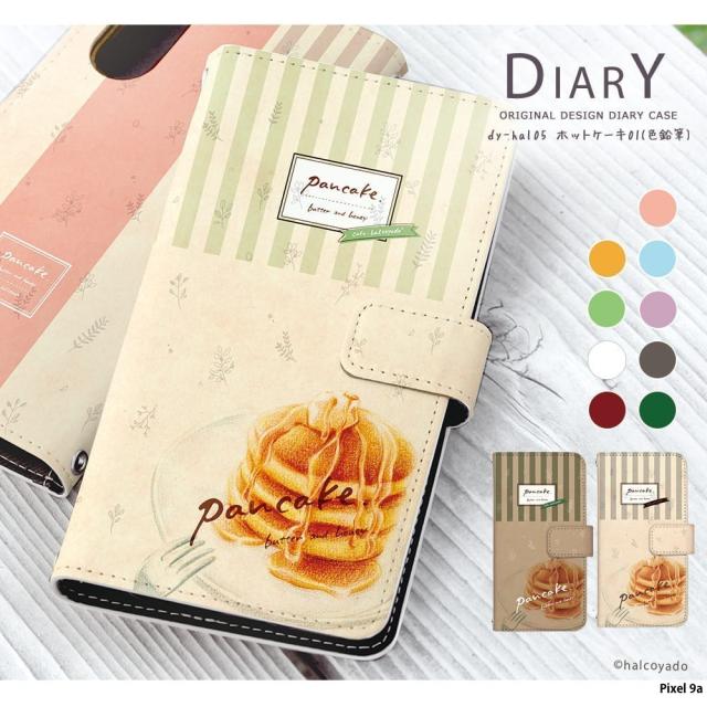Pixel 9a ケース 手帳型 ピクセル9a カバー デザイン ホットケーキ01 色鉛筆 ホットケーキ スイーツ ケーキ 北欧柄 ボーダー 手書き風 イラスト