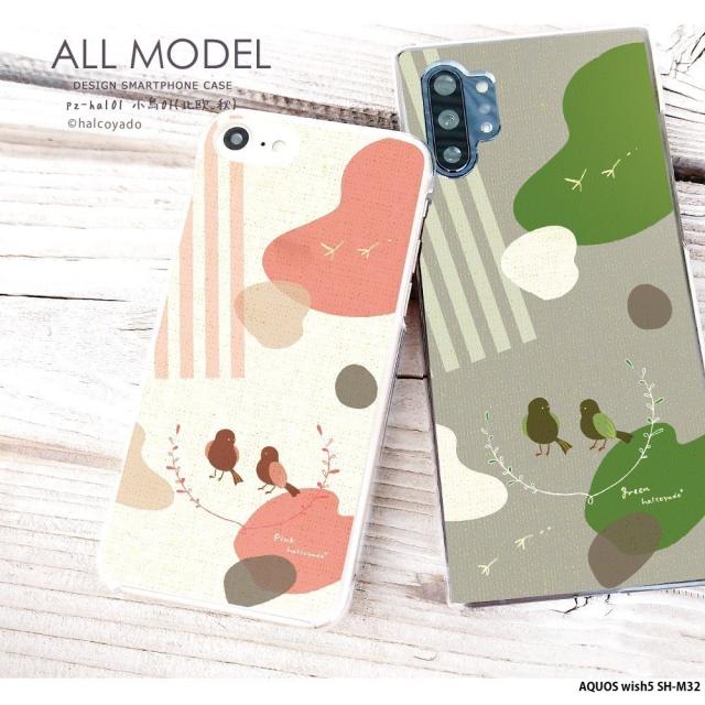 AQUOS wish5 SH-M32 ケース 手帳型 アクオスウィッシュ5 カバー デザイン 小鳥01(北欧-秋) 小鳥 とり 葉 北欧 くすみカラー 手書き風 イラスト かわいい