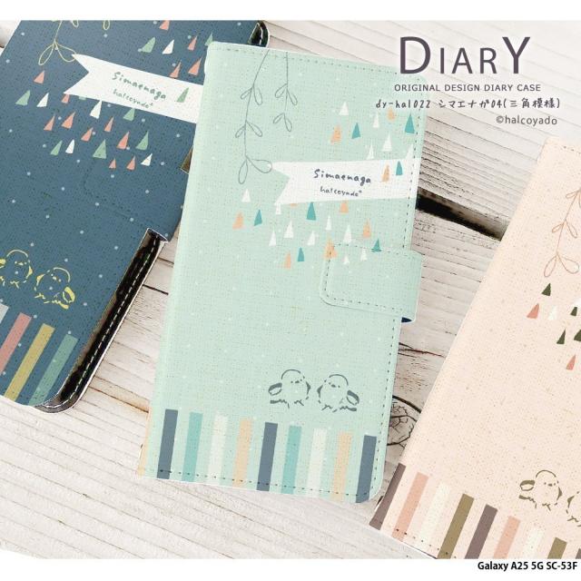 Galaxy A25 5G SC-53F ケース 手帳型 ギャラクシーa25 カバー デザイン シマエナガ04(三角模様) シマエナガ 北欧 ドット柄 布 三角 リボン くすみカラー 手書き風 イラスト