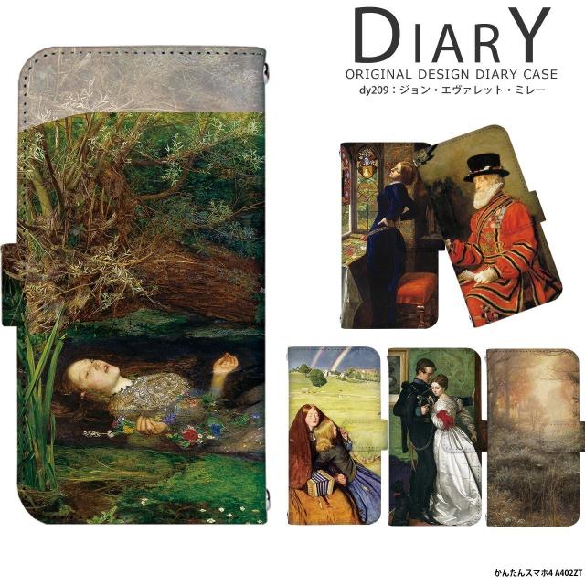 かんたんスマホ4 A402ZT ケース 手帳型 カバー デザイン ジョン・エヴァレット・ミレー 絵画 名画 ミレー オフィーリア 黒きブランズウィック騎兵隊員