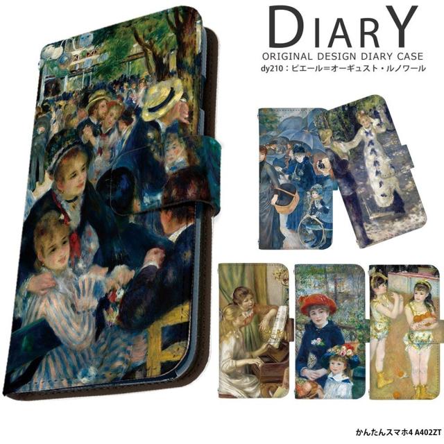 かんたんスマホ4 A402ZT ケース 手帳型 カバー デザイン ルノワール 絵画 名画 ムーラン・ド・ラ・ギャレット ぶらんこ 印象派