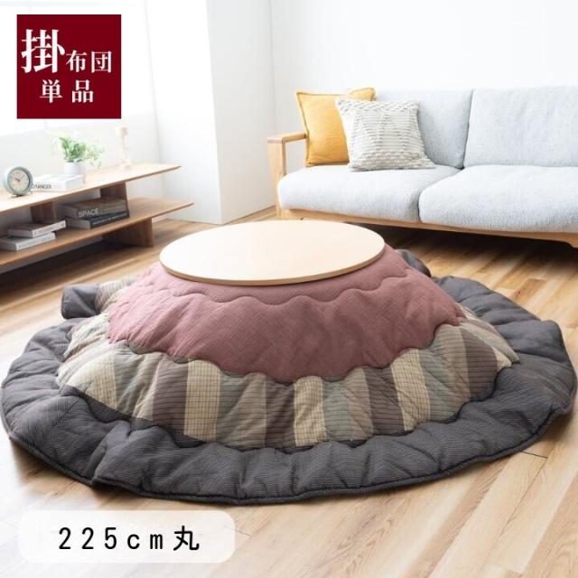 かすみ 薄掛 こたつ布団 円形 丸形 しじら織 和柄デザイン 手洗い 225cm丸 ブラウン