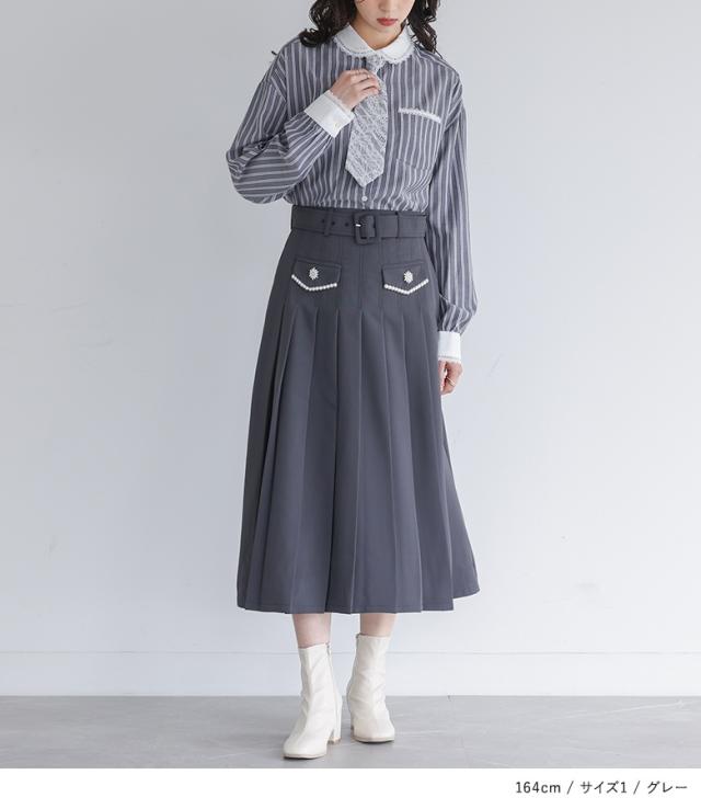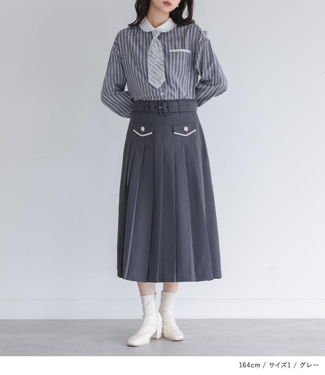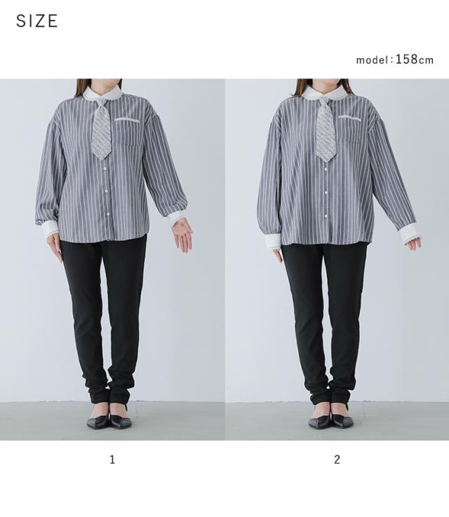 ■デザイン 取り外しできるネクタイがついた、ストライプ柄の長袖シャツ。メンズライクになりがちなストライプ柄も、丸襟とレース使いで女性らしく仕上げました。ネクタイはストライプ生地にレースを重ねて、甘すぎない大人のデザインに。長さの調節も可能で、お手持ちのブラウスやシャツと合わせることでコーディネートの幅が広がります。襟やカフスは無地で切り替えることで、カジュアルすぎず洗練された印象に。ネクタイを外しても、襟元や袖口、ポケットに施されたレースが上品なアクセントになります。1枚で着るのはもちろん、ニットやベストのインナーとしても活躍する、着回し力抜群のアイテムです。 ■コーディネート 女性らしいスカートを合わせることで可愛らしさのあるスタイルに、シンプルなボトムスと合わせることで綺麗めな印象に。様々な系統のスタイルに合わせやすいシャツなので、デニムやスニーカーと合わせてあえてカジュアルダウンさせたスタイルもおすすめです。寒さを感じる時期は、上にニットやベストを合わせてもかさばらずにすっきりと着用できます。 ■素材 多色使いでお洒落な印象が叶うストライプ柄のシャツ生地を使用。程よい厚みで柔らかく、快適な着心地です。季節の変わり目にはもちろん、カーディガンやジャケットのインナーとしても重宝します。 |