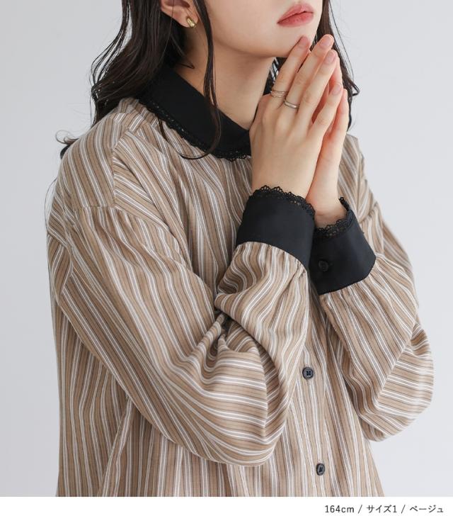 シャツ レディース トップス 長袖 ブラウス ストライプ柄 襟付き 丸襟 ネクタイ付き レース レイヤード 春 秋 冬 【TP】 ボタンシャツ 前開きシャツ 襟付きシャツ 柄シャツ オープンカラー ミディ丈 ミドル丈 ドロップショルダー 調節できる 調整可能 ベルト付き 総柄 配色 おうちで洗える ロングシーズン カジュアル レトロ クラシカル シンプル キレカジ フェミニン ガーリー 可愛い系 大人女子 大人可愛い お洒落可愛い 大人カジュアル 上品 きれいめ ベーシック Sサイズ Mサイズ Lサイズ LLサイズ 3Lサイズ XLサイズ ぽっちゃり 体型カバー 大きいサイズ プラスサイズ 10代 20代 30代 40代 50代 60代 女子会 通学 お買い物 お出掛け 旅行 リゾート おしゃれ お洒落 トレンド 流行 ママ 母 母親 somari imagination ソマリイマジネーション ナチュラル osharewalker オシャレウォーカー おしゃれうぉーかー ベージュ グレー 灰色[ID]13to07p