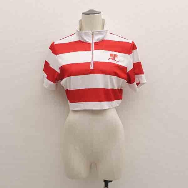 courreges / クレージュ ◆クロップドハーフジップシャツ/ボーダー柄/レッド×ホワイト/42 AGF22114W レディース 【中古】