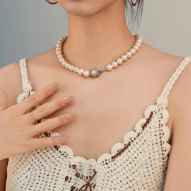 ネックレス フラワーペンダント パールネックレス(9mm/10mm) ネックレス 韓国アクセサリー