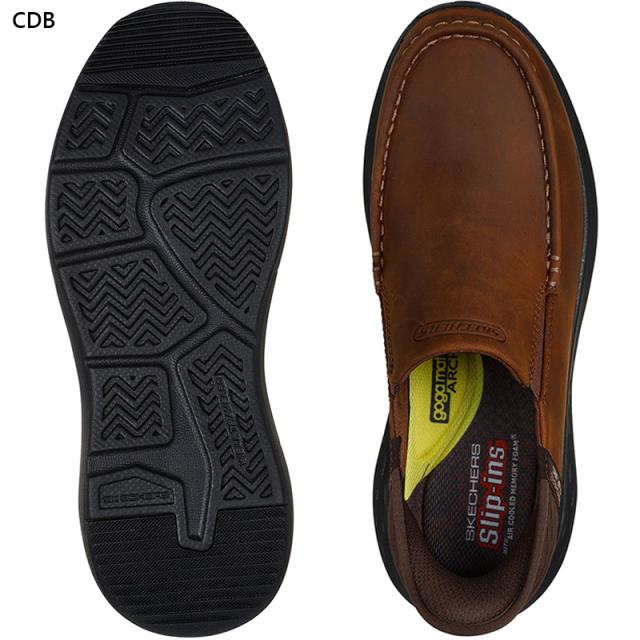 Skechers Hands Free Slip-ins™(スケッチャーズ ハンズフリー スリップインズ) Relaxed Fit™(リラックスドフィット):パーソン - オズウィンで、快適な履き心地とクラシックスタイルを実現。独自のHeel Pillow™(ヒールピロー)を使ってデザインされたレースレスフィットのモックトゥ式スタイル。Skechers Slip-ins™(スケッチャーズ スリップインズ)形状のヒールパネル、レザーのアッパー、Skechers Air-Cooled Memory Foam™(スケッチャーズ エアクールドメモリーフォーム)のインソール、サポート力を高めるGoga Mat Arch™ (ゴガマットアーチ)のクッションが特長です。