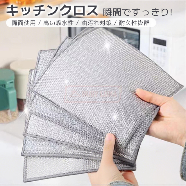 最安挑戦 冬新作 送料無料 新作 10枚セット キッチンクロス キッチンタオル 食器洗い用メッシュふきん 竹炭キッチンクロス 吸水性 油汚れ対策 洗浄力 両面使用 乾湿両用 柔らかく ステンレス鋼ワイヤータオル 20×20cm 繰り返し利用可