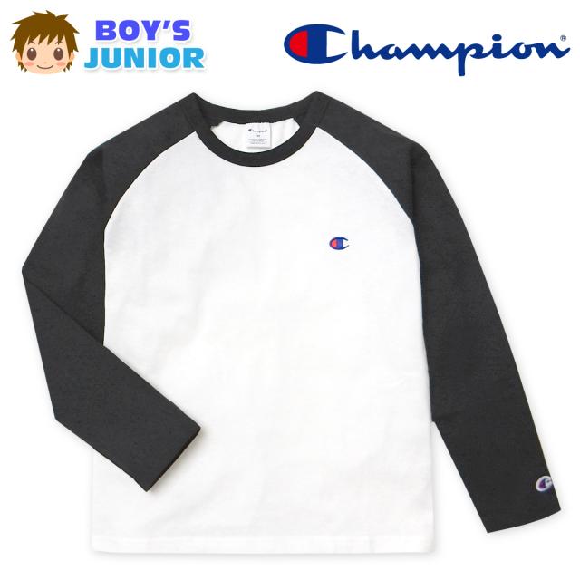 【送料無料】男児 ジュニア 本体綿100% 長袖 Tシャツ Champion/チャンピオン アメリカ綿 ラグラン 刺繍 子供服 男の子 140cm 150cm 160cm td-0936c-bk【メール便対応】
