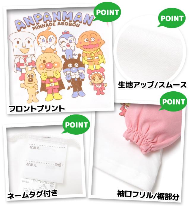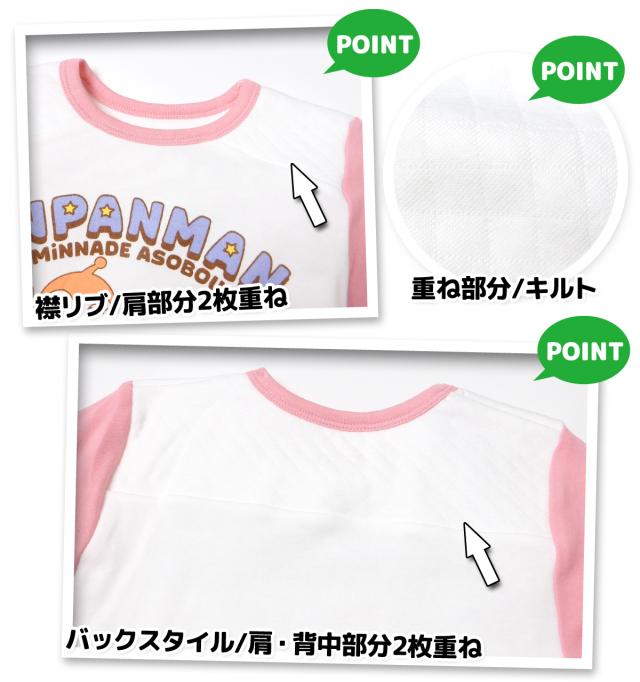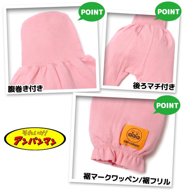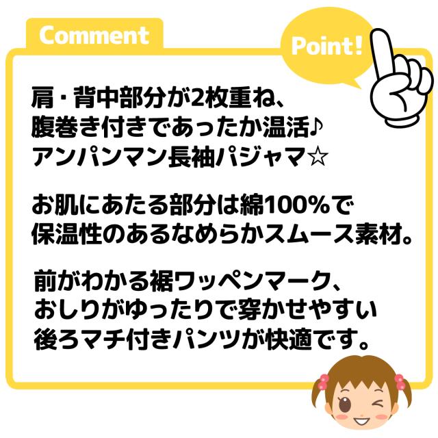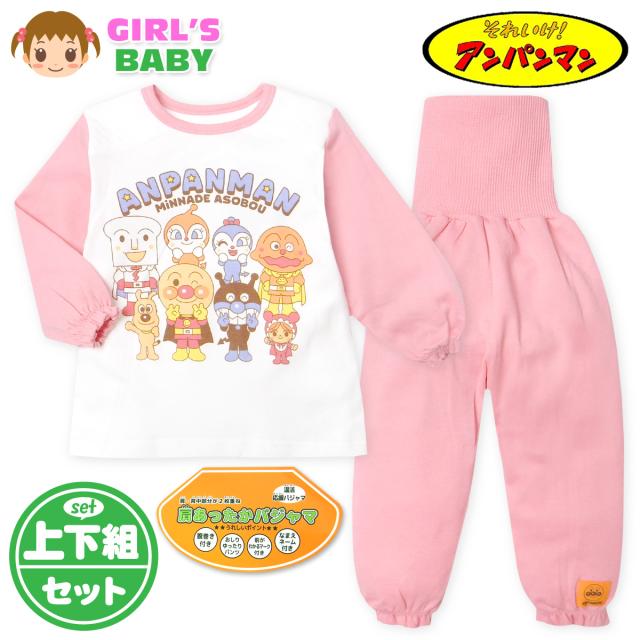 【送料無料】女児 ベビー 腹巻付き 長袖 パジャマ アンパンマン 上下組 肩&背中2重 温活 あったか 保温 スムース 本体綿100% 女の子 80cm 90cm 95cm iw-1385【メール便対応】
