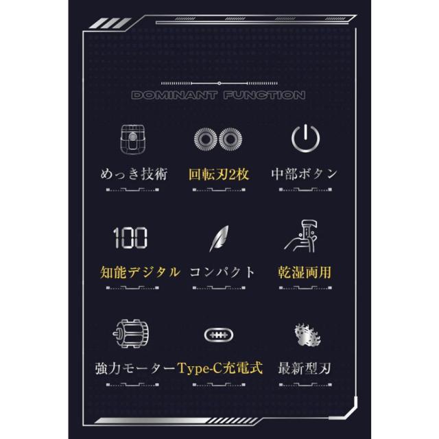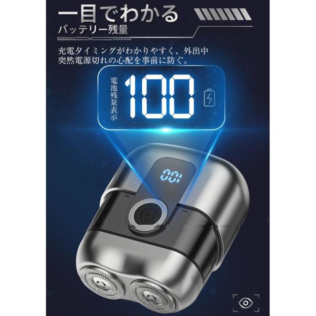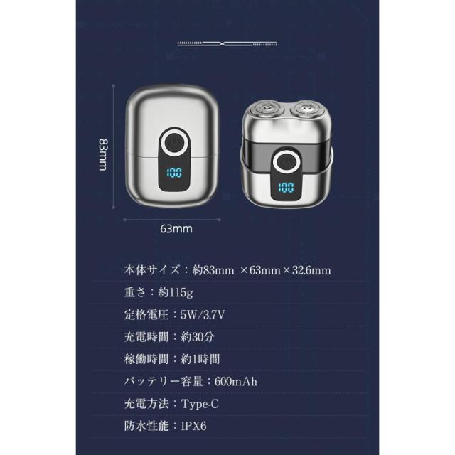 【キーワード】小型電動シェーバー メンズ 男性 髭剃り 電気シェーバー 電動ひげそり 軽量 コンパクト 乾湿両用 急速回転 TYPE-C充電式 IPX6防水