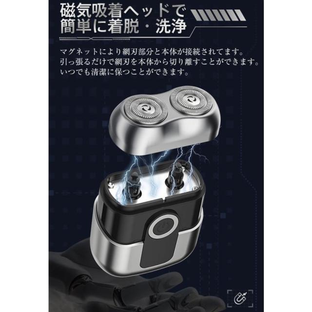 シェーバー 小型 電動シェーバー メンズ 男性 髭剃り 電気シェーバー 電動ひげそり 軽量 コンパクト 乾湿両用 急速回転 TYPE-C充電式 IPX6防水