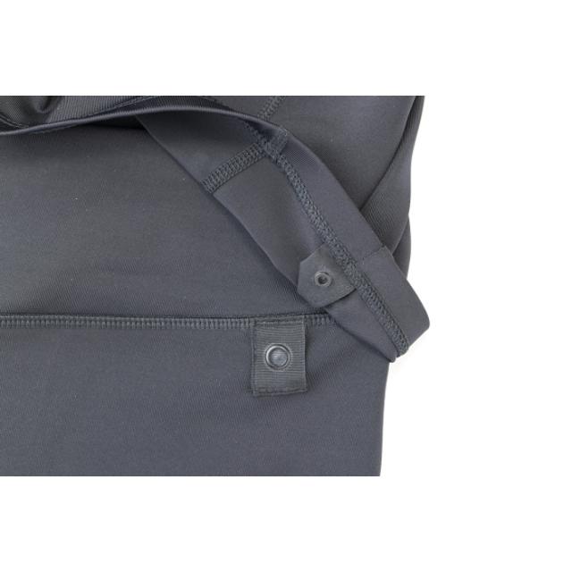 トップスはジッパー付きで着脱が簡単、めくれ防止のスナップボタンでトップスとボトムスが留められる仕様。