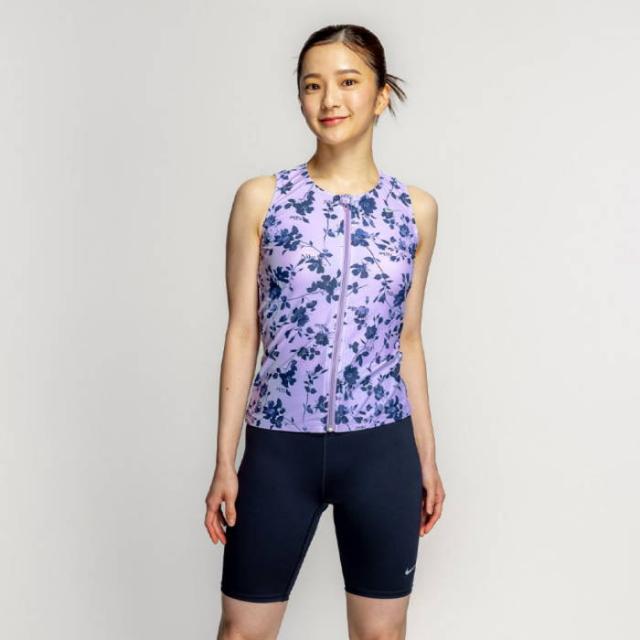 ナイキ レディース 総柄ジップ付き袖なしセパレーツ スイムウエア スイミング 水泳 フィットネス水着 ブラック 黒 ネイビー パープル 紫 送料無料 NIKE 2993148