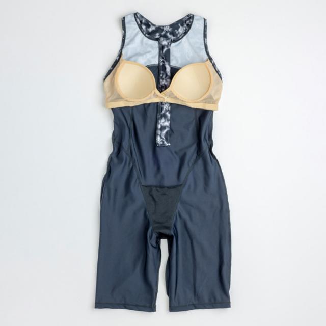 泳ぎやすくて着替えもしやすいフィットネス水着。ジッパー付きで着脱カンタン。