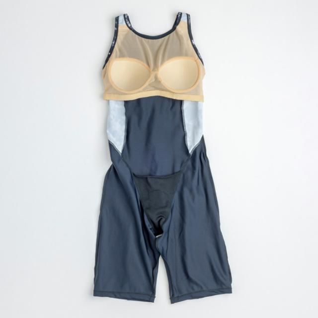 上下一体型のレッグスーツは水中での動きに合わせてストレッチするため運動に最適。