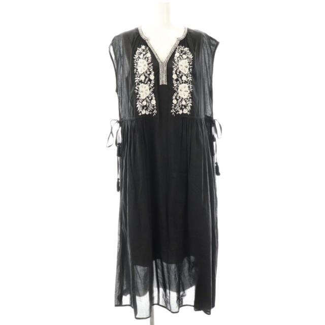 【中古】ヌキテパ スリットネックエンブロイダリーワンピース ロング ブラック ホワイト /DO ■OS レディース