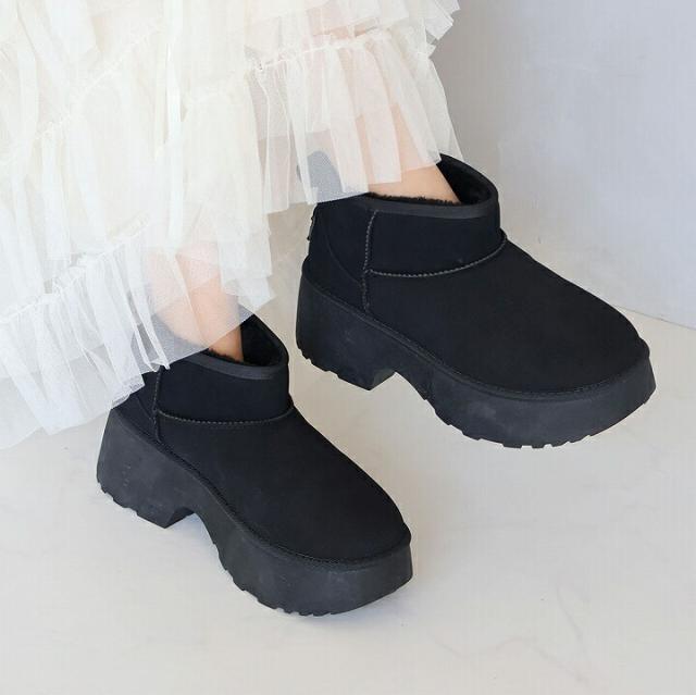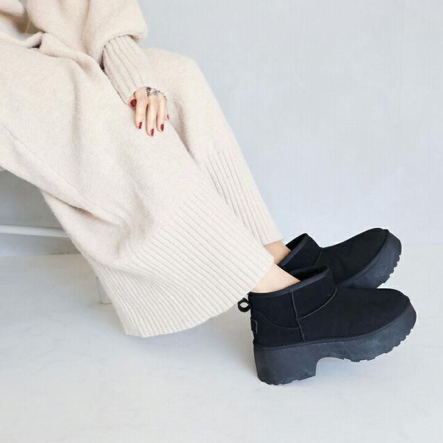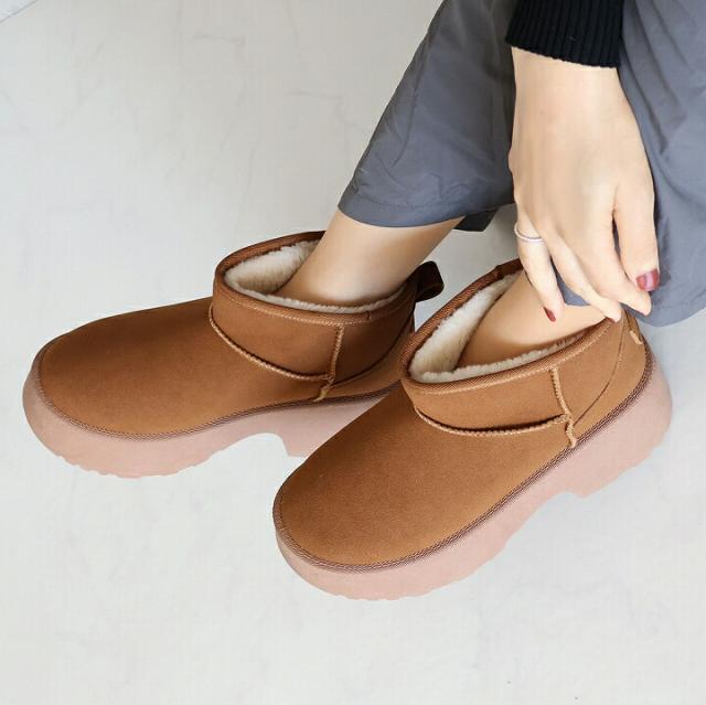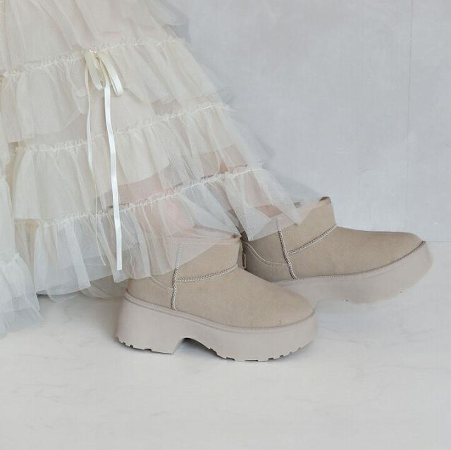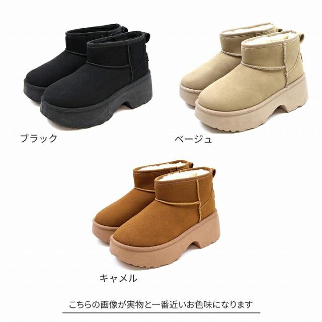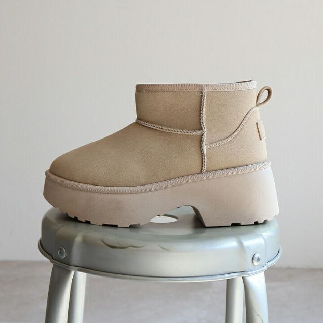 もふぽか厚底7cmチャンキーヒールムートンブーツ