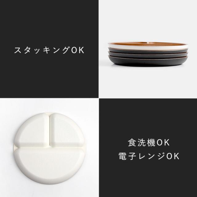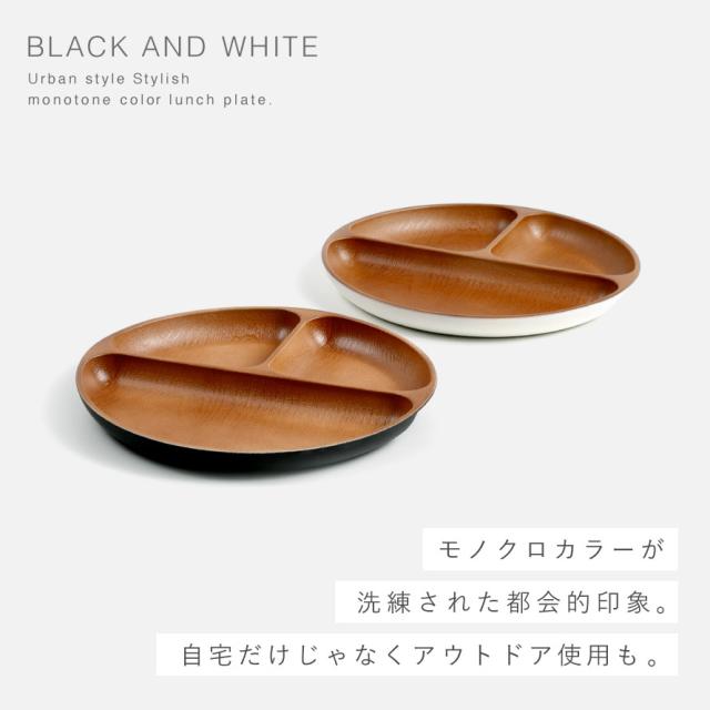 ワンプレート 仕切り 皿 25cm ランチプレート 食洗機対応 割れない食器 日本製 山中塗 シンプル レンジ対応 1:1:2 ダイエット 白 黒 軽量 軽い 欅杢目 スタッキング ナチュール 【モノトーン×木目】スタッキング 重ねられる ホワイト ブラック 高齢者 介護