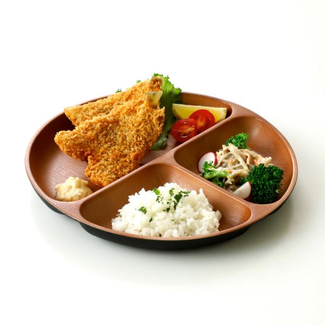 主食と副菜、デザートなどをバランスよく盛り付けることができる、3つの仕切り付き。
