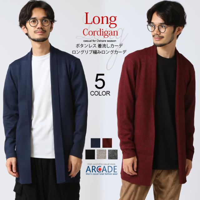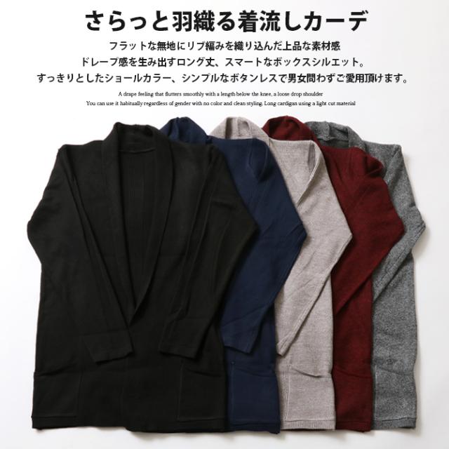 カーディガン メンズ 秋新作 ロングカーディガン 無地 ボタンレス 着流しカーディガン
