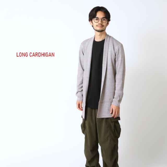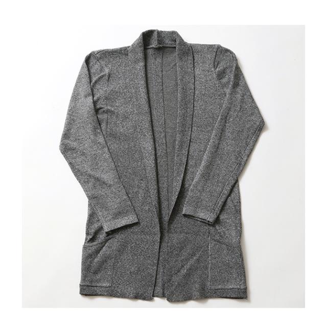 フラットな無地にリブ編みを織り込んだ上品なロングカーディガン