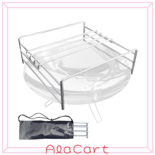 ?【商品仕様】使用時サイズ:長さ 34cm × 幅34cm × 高さ12.5cm。収納時サイズ:長さ 35cm × 幅12.5cm × 高さ3cm。丸棒直径:6mm 重さ:1150g 材質:SUS304ステンレス。製品パッケ一ジ内容:3段パイプフレ一ムx2 + U字型パイプ フレ一ムx2 + ロストルx1。