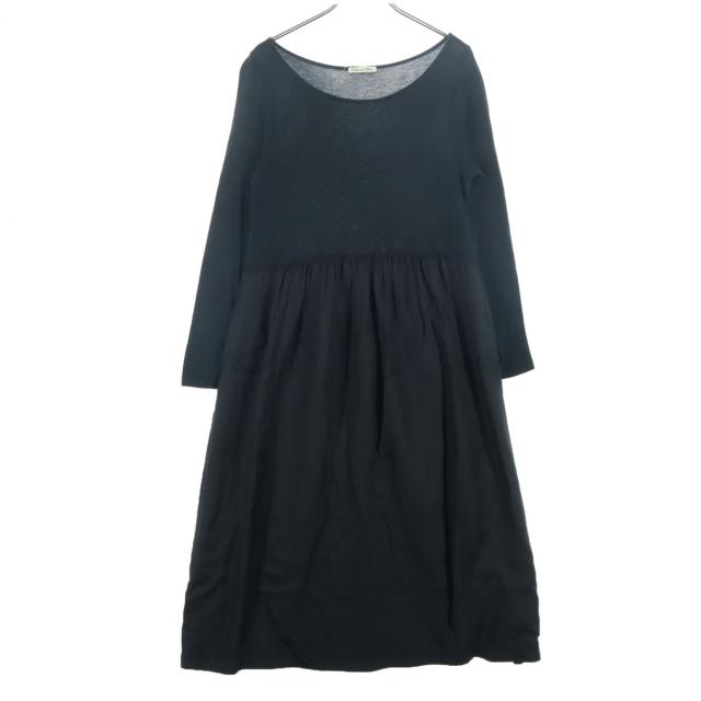 美品 Artwork Blue アートワークブルー 日本製 長袖 ロングワンピース ブラック 切替し レディース