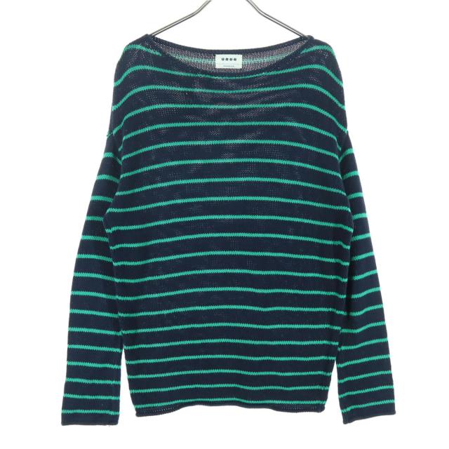 美品 PLST プラステ ボーダー柄 長袖 セーター 2 グリーン レディース
