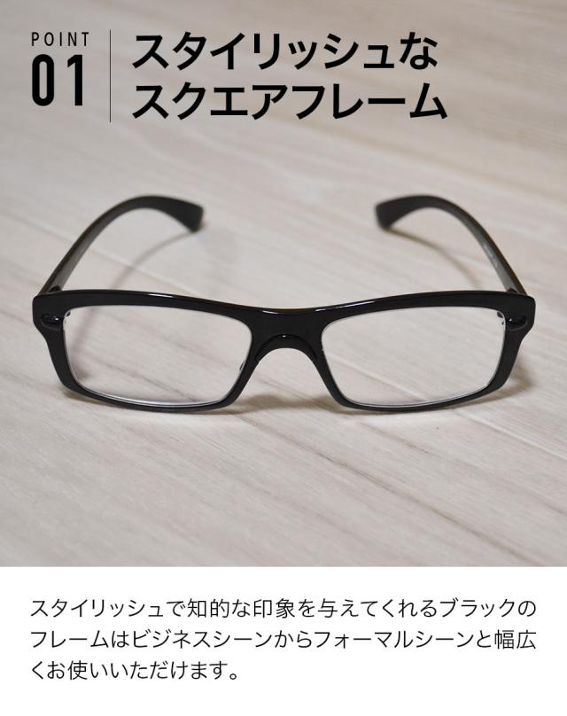 送料無料 柔らかフレーム&ブルーライトカット老眼鏡 CPR-301PF ブラック スクエアタイプ パソコン用 スマホ用 リーディンググラス 男性用 女性用