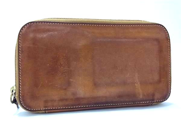 IL BISONTE イルビゾンテ レザー ラウンドファスナー 長財布 ウォレット 札入れ 小銭入れ カード入れ メンズ ブラウン系 DK2824