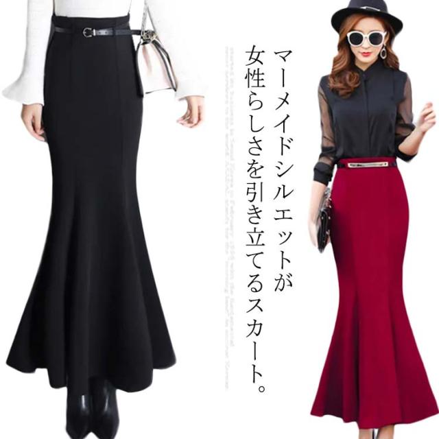 マーメイドスカート レディース ロングスカート マキシ丈 ストレッチ タイトスカート ハイウエスト フレアスカート 春 秋 冬 大きいサイズ おしゃれ きれいめ 可愛い 着痩せ 美脚 フォーマル フェミニン 無地 シンプル