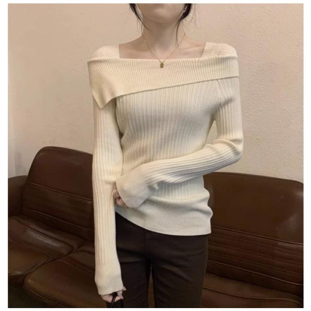 通勤 オフショルダー トップス ワンショル風 春秋 ニットセーター スクエアネック レディース 長袖 セーター タイト 着痩せ 二の腕隠し リブニット セクシー キレイめ 無地 オフィス ニットセーター 韓国ファッション
