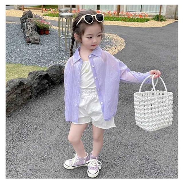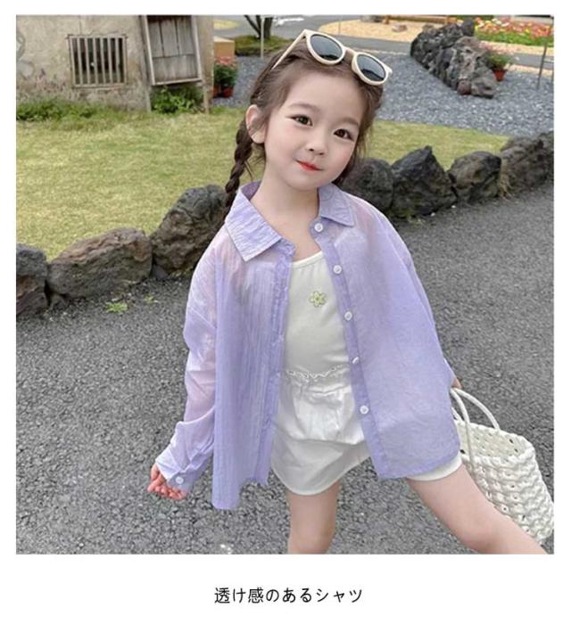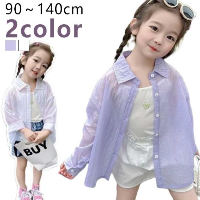おしゃれ シンプル 女の子 シャツ キッズ 小学生 ブラウス 子供服 可愛い ガールズ 透け感 無地 長袖 シアーシャツ シースルー 羽織 韓国 100 透けシャツ 幼稚園 保育園 シアー 90 キッズ 110 120 130