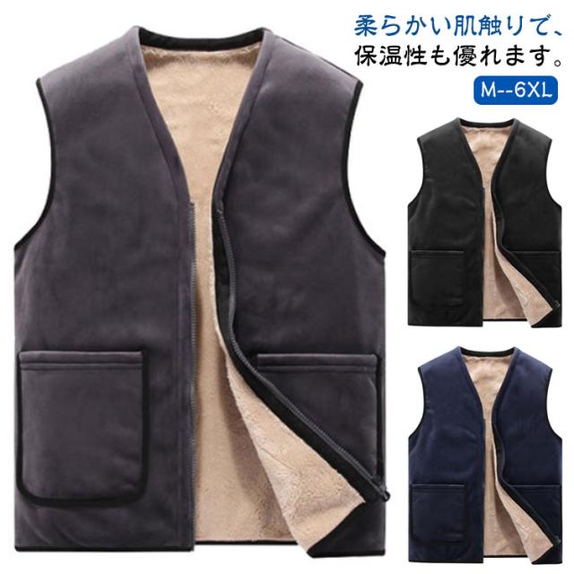 裏起毛 冬 フリースベスト Vネック メンズ 秋 インナーベスト 裏ボア 紳士 フリースベスト ボアベスト 保温 防寒 チョッキ あったか フリース 軽量 中綿ベスト 袖なし トップス 大きいサイズ あったか 厚手 作業着 無地 部屋着 ルームウェア カジュアル 年寄り