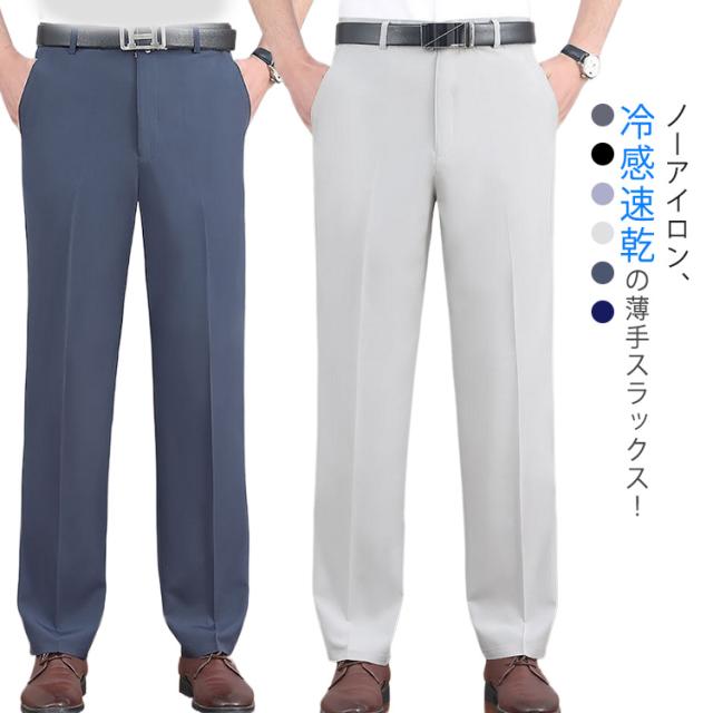 大きいサイズ ビジネスパンツ スラックス 春夏 ストレッチ メンズ 冷感&速乾 アイスシルクパンツ 深め股上 ビジネス ウォッシャブル アイスシルクスラックス 接触冷感 薄手 ズボン ロングパンツ おしゃれ