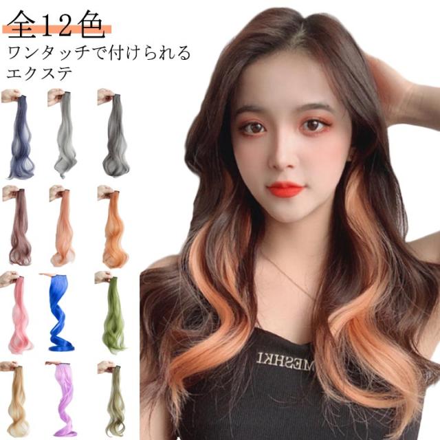 メッシュ 同色2本セット ワンタッチ 同色2本セット 自然 耐熱 カラーエクステ ポイントウィッグ 部分ウィッグ 襟足 エクステ 発表会 つけ毛 ロング エクステンション インナーカラー カール かつら キッズ 大人 全12色 ダンス 卒業式 結婚式 ハロウィン ライブ