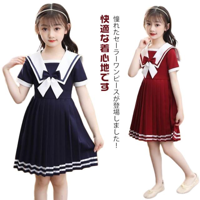 制服 ブルー 子供服 ライン入り ワンピース 半袖 可愛い セーラーワンピース 高校生 セーラー 大きいサイズ 夏 膝上丈 かわいい 小学生 可愛い セーラー襟 春 ライン入り ネイビー 女の子 ロングワンピース 通学 お出かけ 旅行 プレゼント ギフト