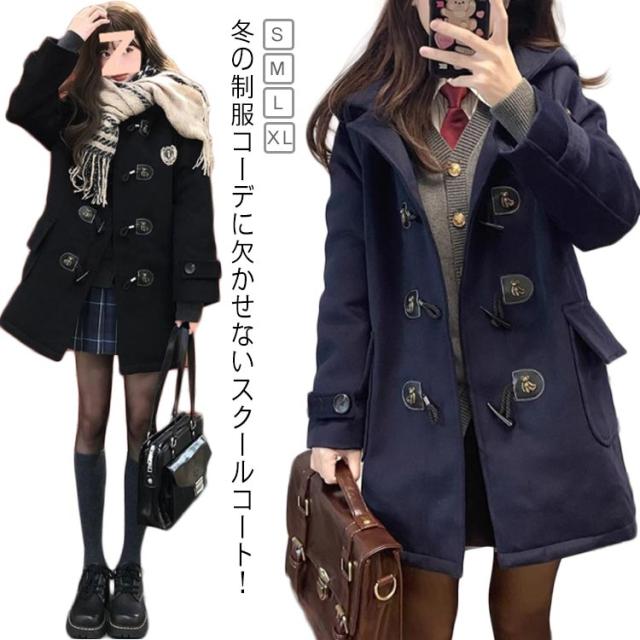 通学 ロング丈 冬 中学生 コート 通学 ダッフルコート ダッフル スクールコート 女子 無地 ブラック スクールコート ネイビー 紺 秋冬 防寒着 シンプル 学生 カジュアル 高校生 コート 女子 学生服 制服 暖かい ギフト プレゼント