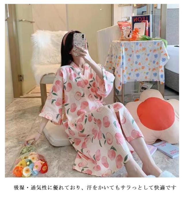 ナイトガウン ガーゼ 作務衣 寝巻き 和風パジャマ 寝間着 レディース 婦人用 夏 寝巻 甚平 綿 ゆかた 浴衣 作業着 ねまき 入院 介護用 パジャマ 前開き 和風 洗える浴衣 浴衣 夏素材 女性用 通気性良く 花柄 総柄 涼しい 部屋着 柔らかい 母の日