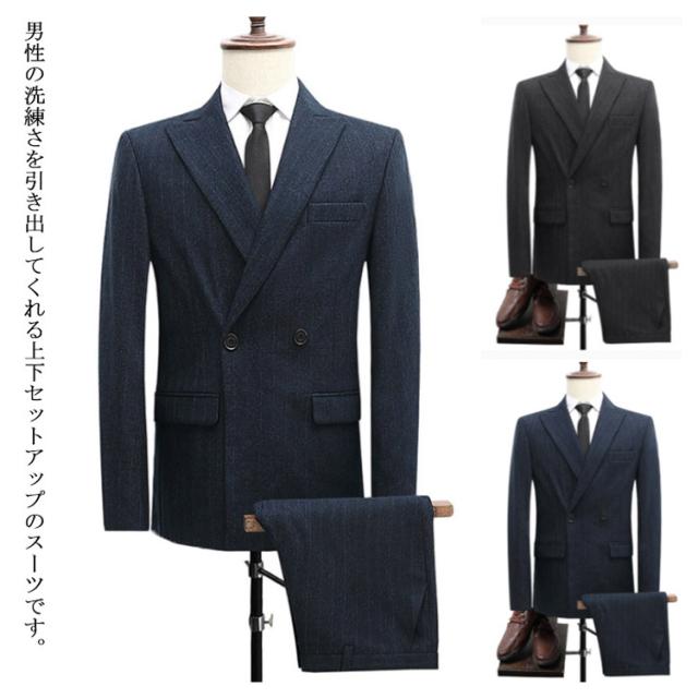 スーツ メンズスーツ 2点セット ジャケット ズボン 2つボタン スーツセット ビジネススーツ スリムスーツ 春夏 秋冬 男性 ビジネス フォーマル 結婚式 面接 オシャレ 大きいサイズ ブルー ブラック M L 2L 3L 4L
