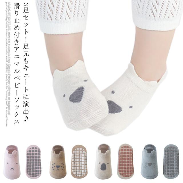ベビーソックス 綿 ベビー 靴下 動物 ソックス 靴下 夏 子供用靴下 赤ちゃん 新生児 3足セット キッズ 男の子 女の子 ベビー用品 滑り止め付き コットン アニマル